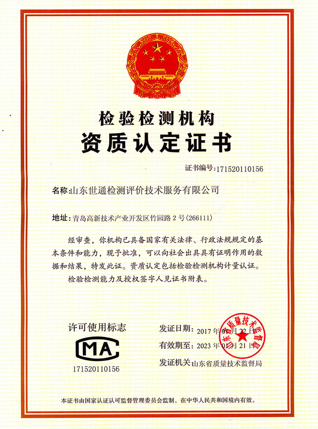 檢驗檢測機構(gòu)資質(zhì)認定證書 點擊放大 |